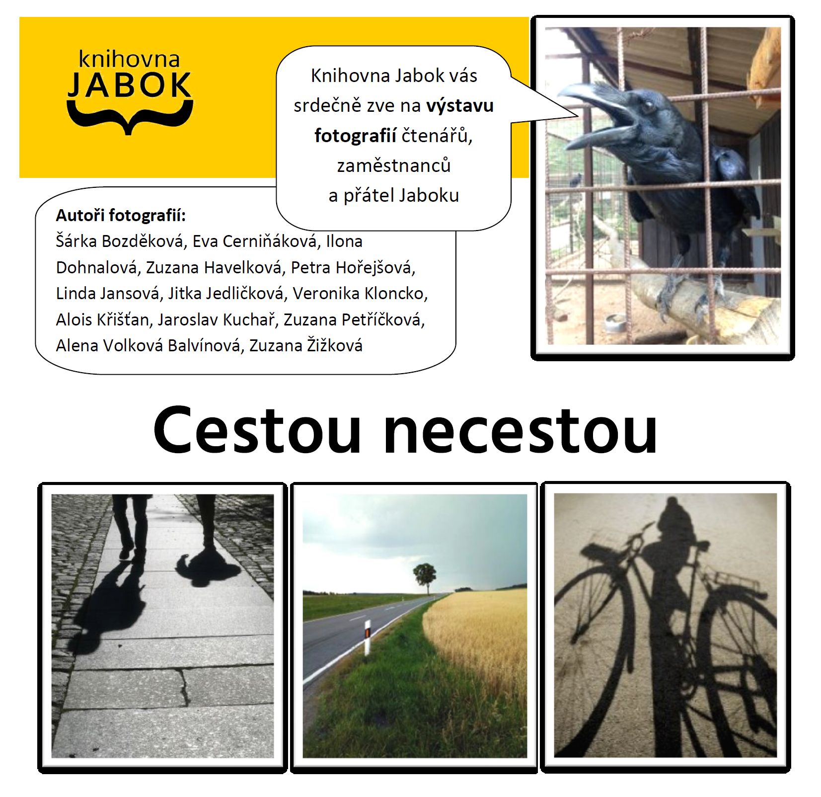 Knihovna Jabok srdečně zve na Vernisáž výstavy fotografií čtenářů a přátel Jaboku Cestou necestou 2017/18.  Vernisáž se koná v pondělí 15. října v  16 hodin  v Knihovně Jabok.