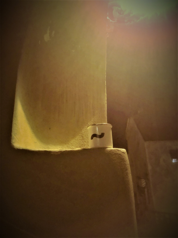 Osamocený hrneček s logem Jaboku postavený na zděné peci