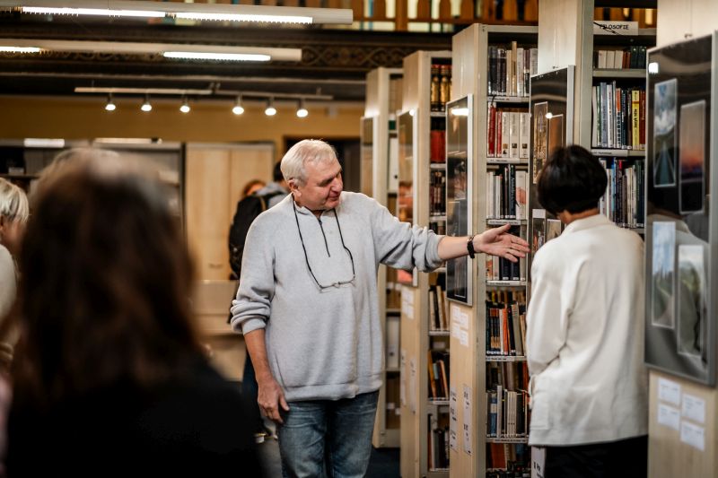 Fotografie z vernisáže výstavy Cestou necestou 2023, která se konala 30. října 2023.