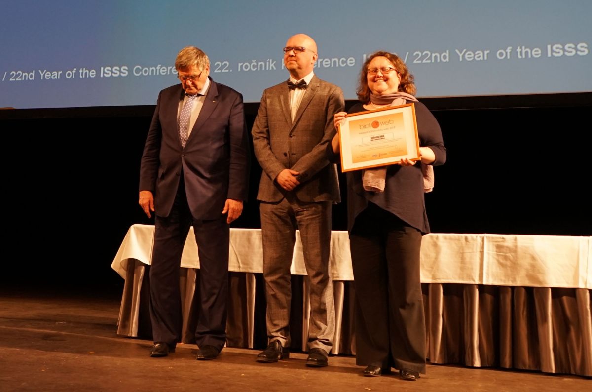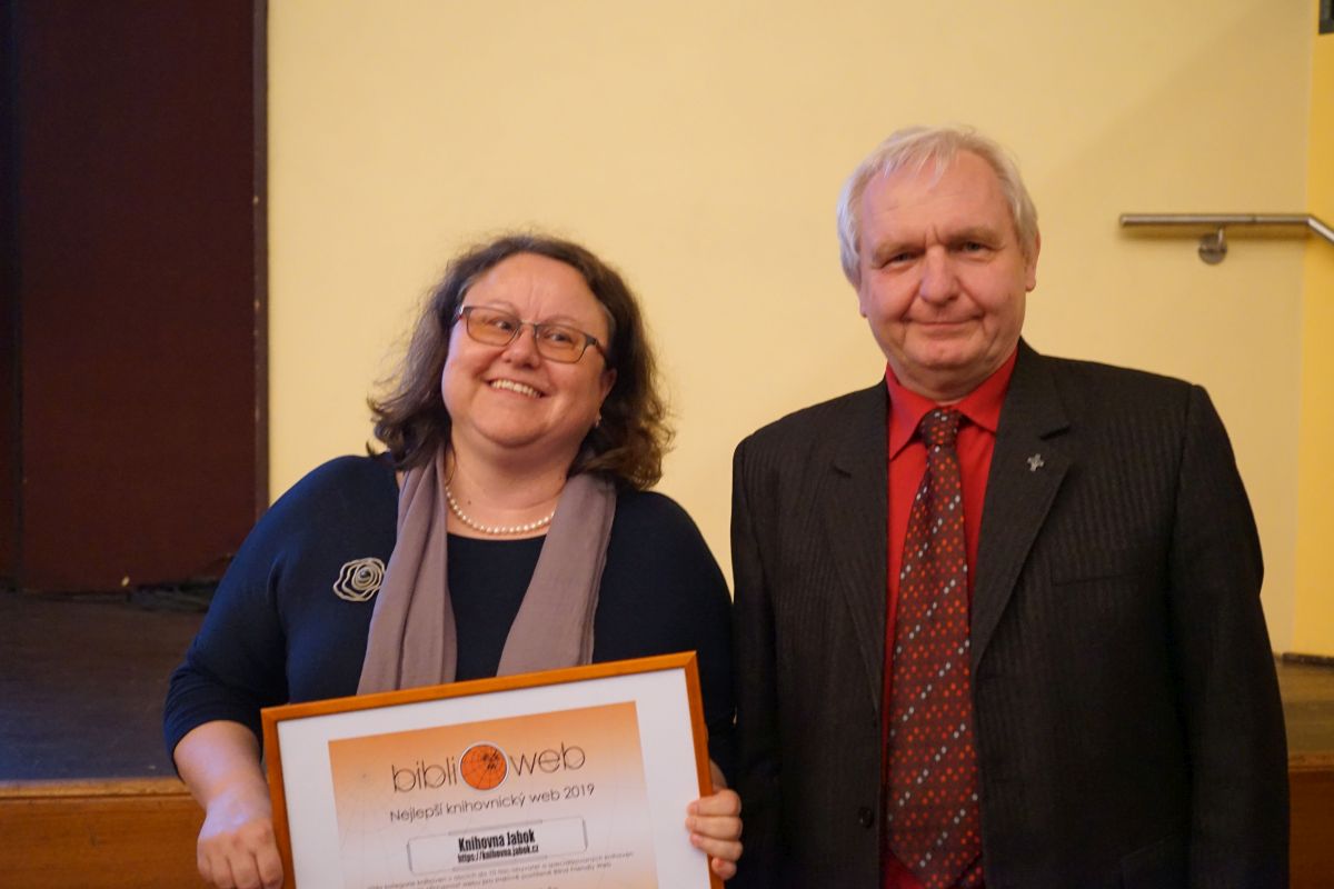 Vedoucí Knihovny Jabok přebírá cenu Biblioweb